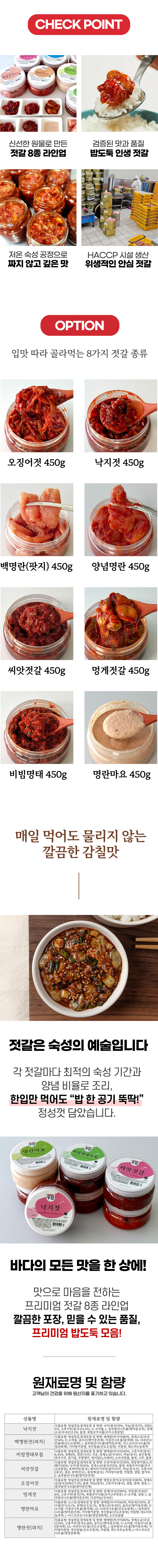 백명란 오정어젓 낙지젓 양념명란 씨앗젓갈 멍게젓갈 비빔명태 명란마요