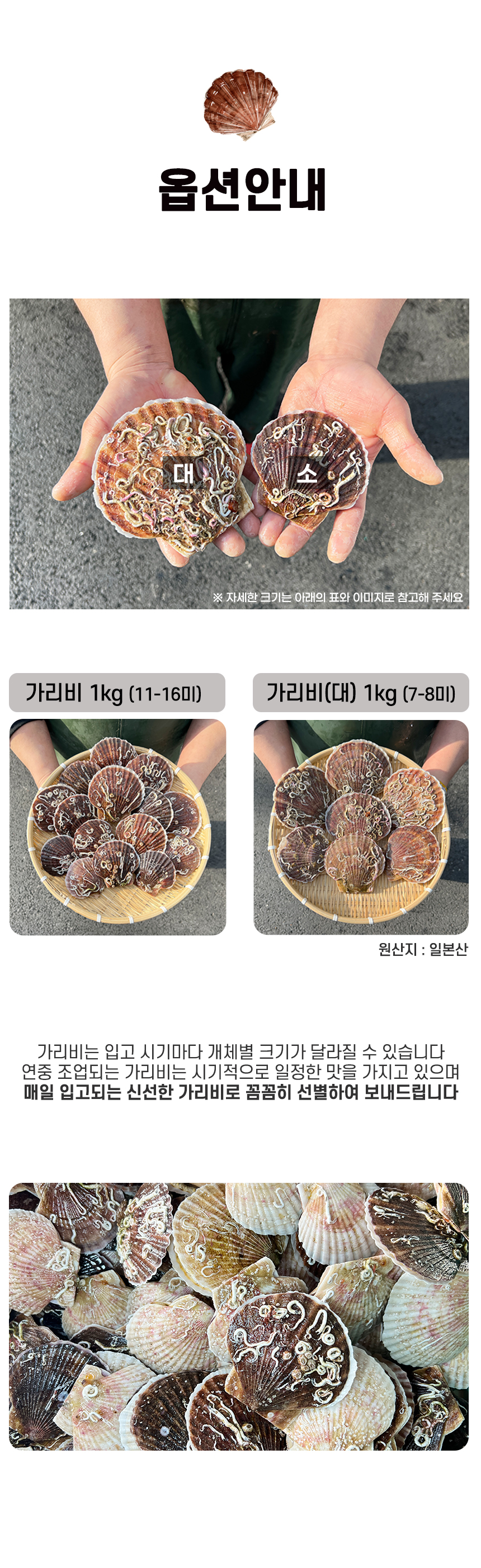 가리비 옵션안내