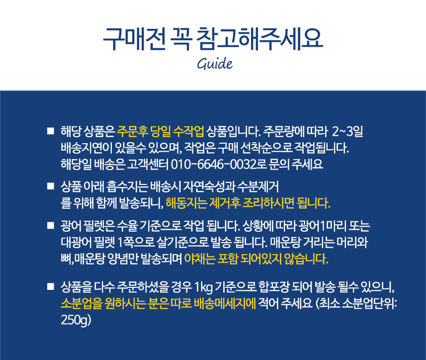 구매하신 품목에 한하여 절단머리&뼈 (매운탕거리)는 구매 수량 만큼 구매하실 수 있습니다.