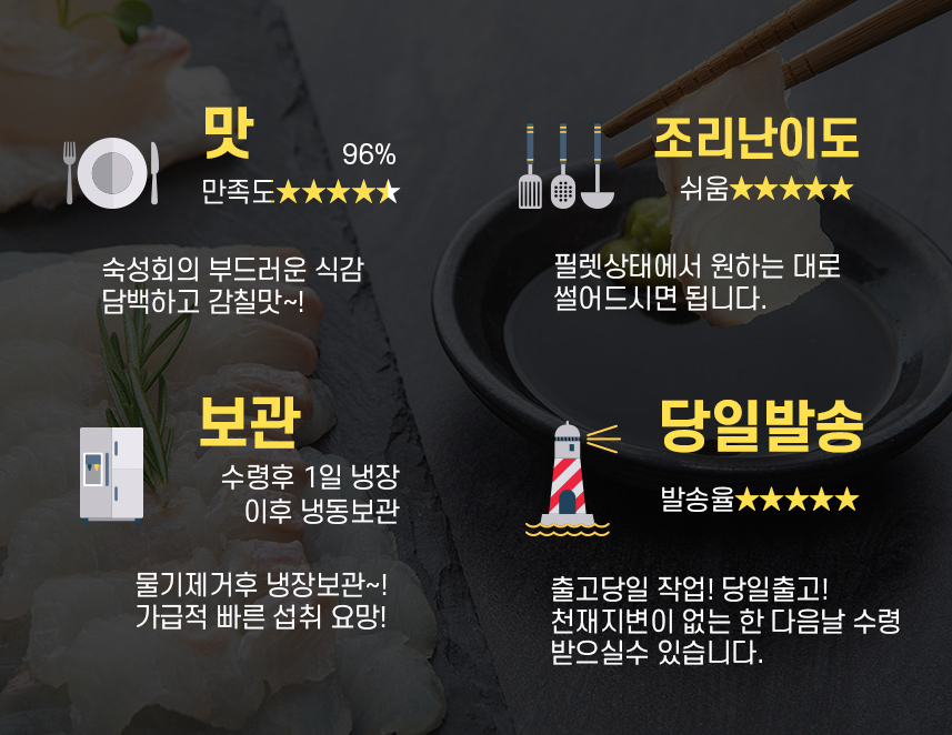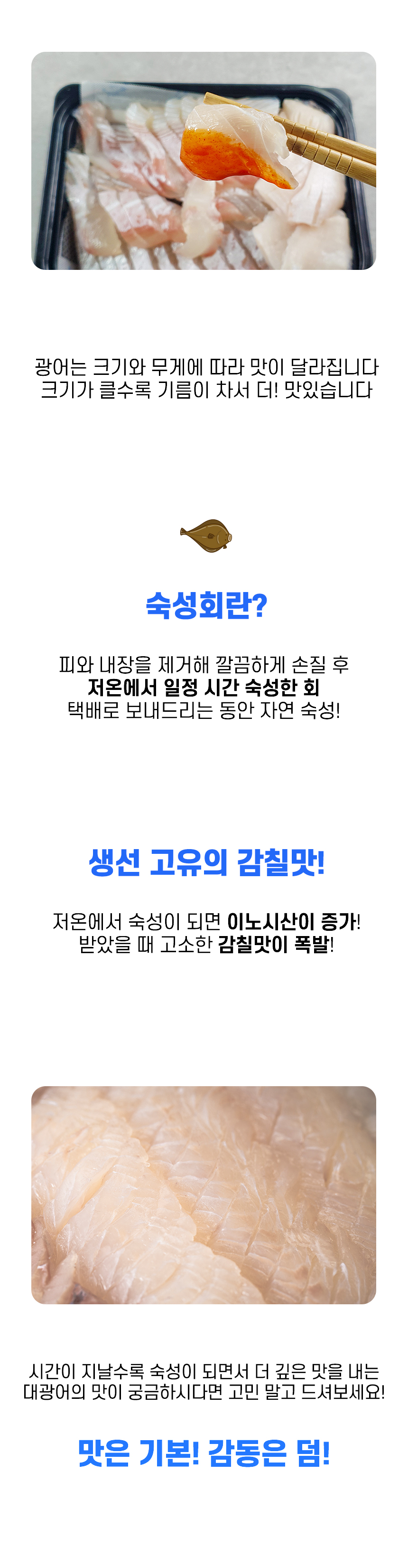 대 광어(필렛/슬라이스)는 배송 24시간 안에 자연 숙성 과정을 거쳐 더 맛있게 배송!