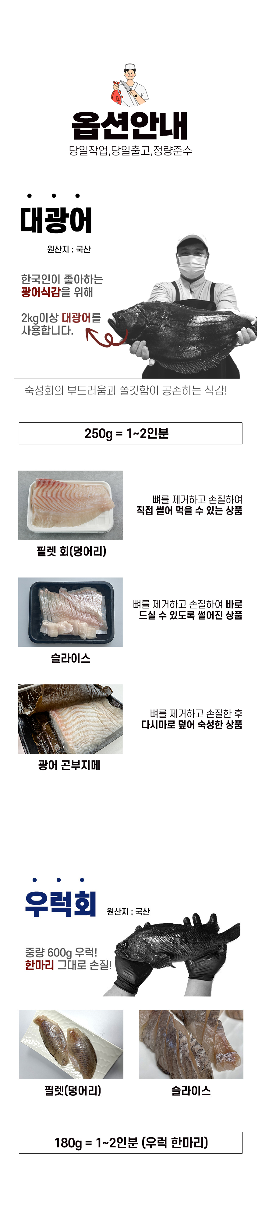 (대부분 제주 광어로 작업되나, 상품입고 수율상태에 따라 완도 광어로 변경될 수도 있습니다.)
