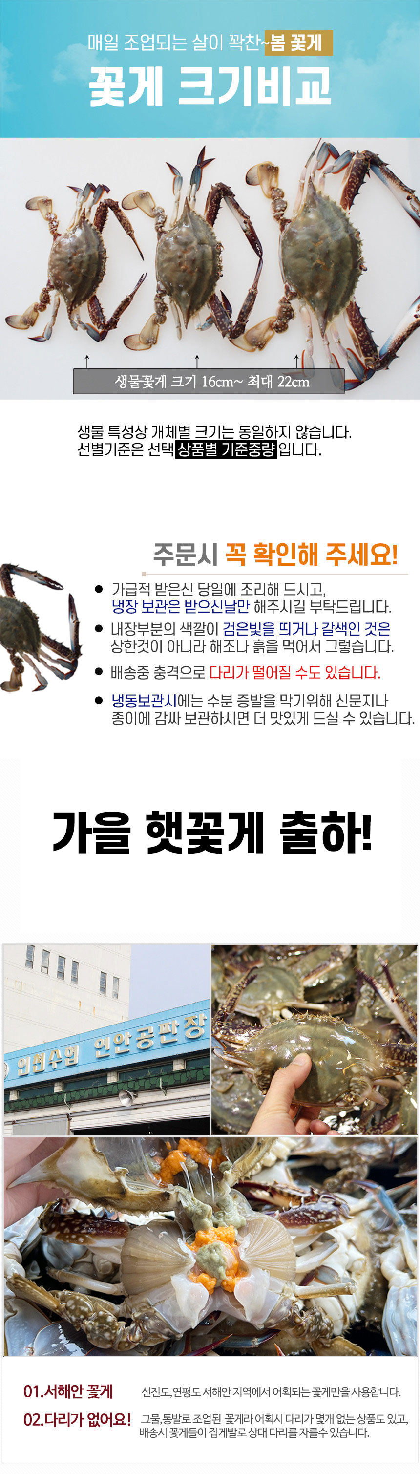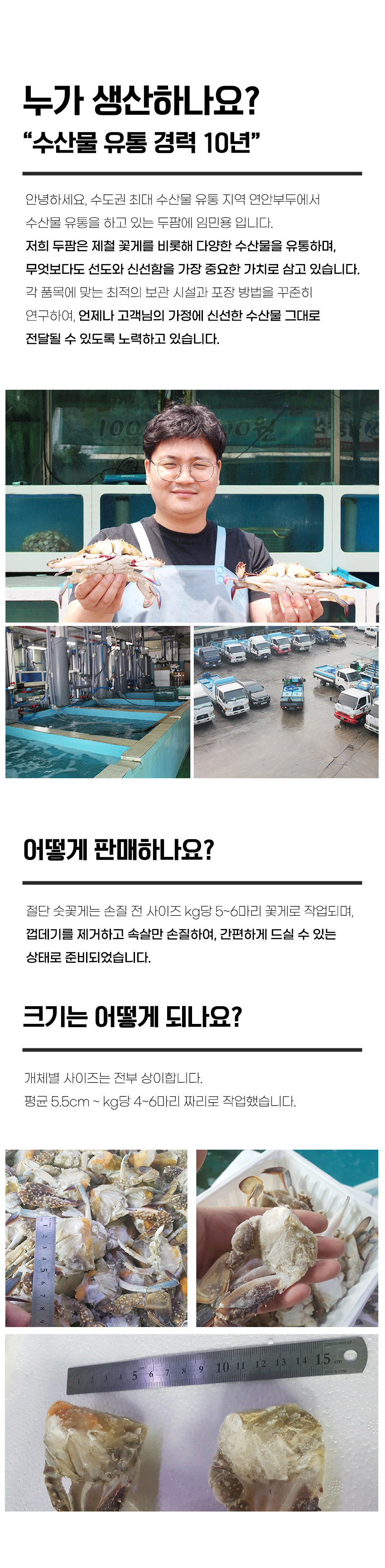 꽃게는 대부분 도착 시 죽어서 도착합니다.