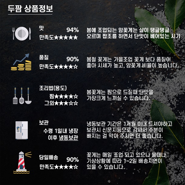 달큰한 살과 알배기의 조합! 봄철에는 꽃게 꼭 드셔야 합니다.