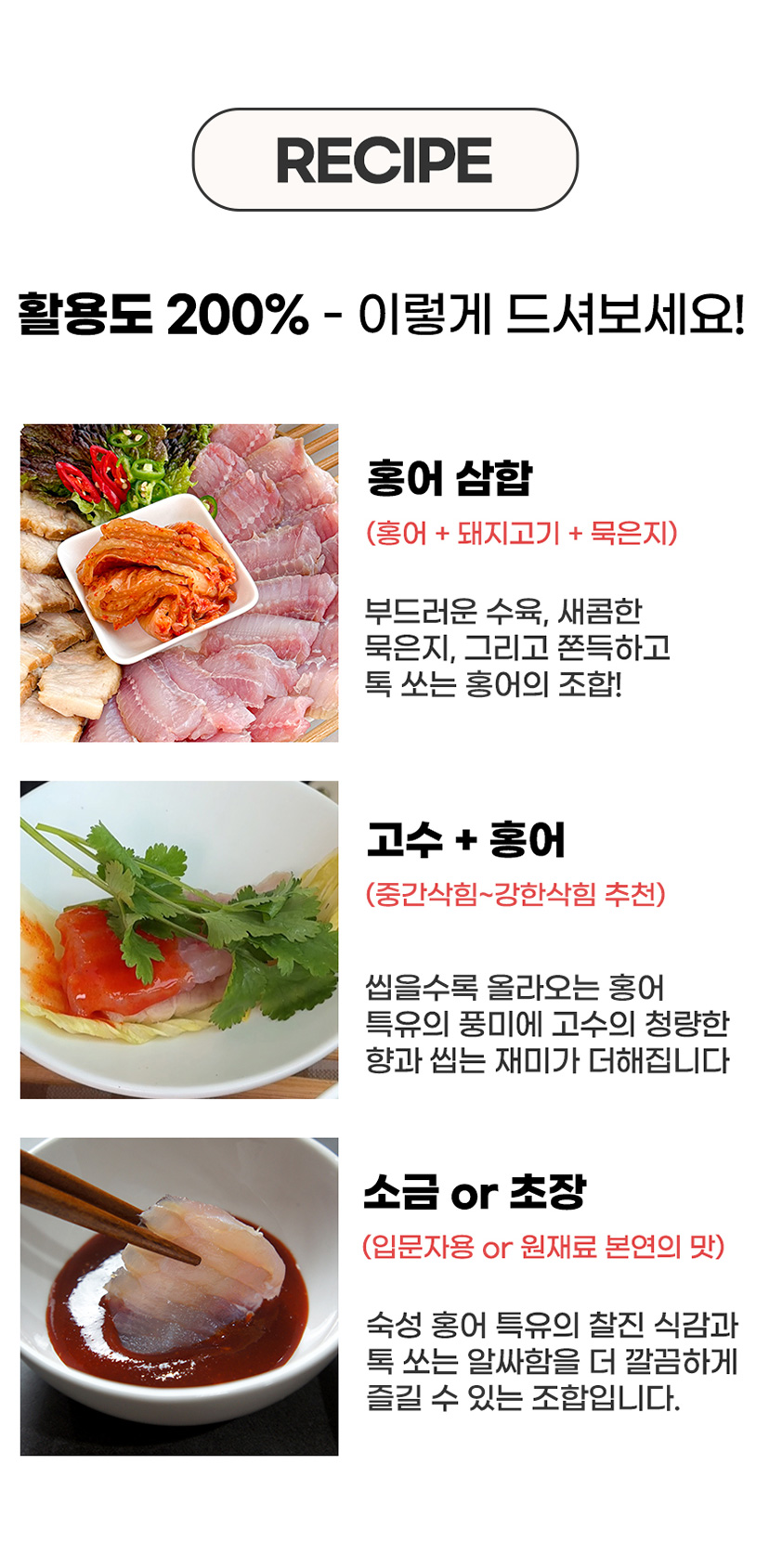 국산 홍어 500g + 초장100g 국산 홍어 1kg + 초장100g