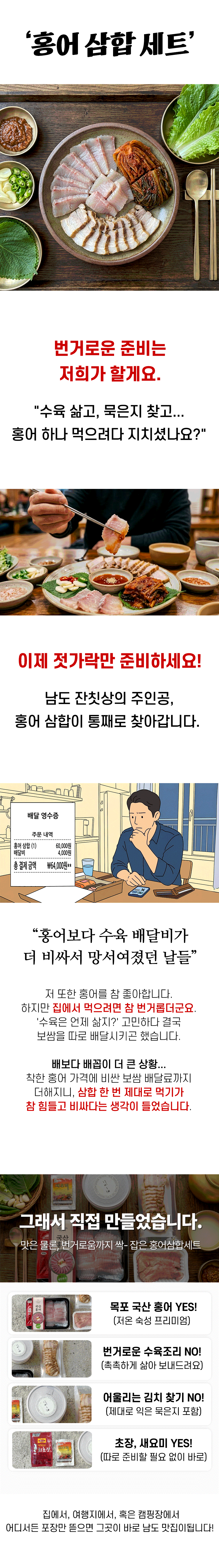 👉 41,900 → 37,900원 국산홍어500g + 삼겹보쌈수육200g + 묵은지캔460g+ 새우젓갈 👉 49,900 → 45,900원